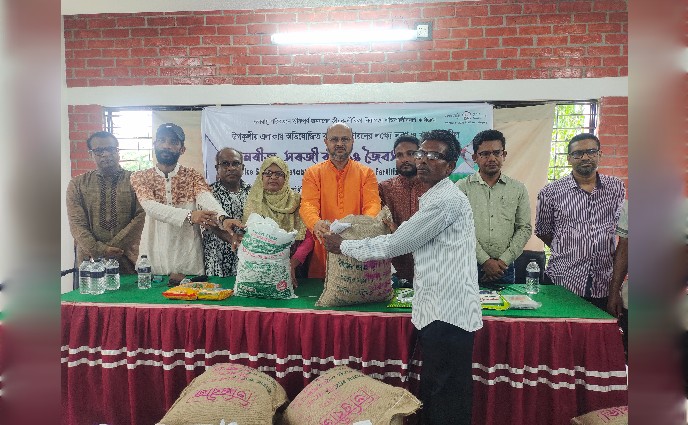 বেসরকারি উন্নয়ন সংস্থা লিডার্সের বাস্তবায়নে এবং জার্মান দাতা সংস্থা ”ব্রেড ফর দ্যা ওয়ার্ল্ডের” আর্থিক সহযোগিতায় “জলবায়ু পরিবর্তনে ঝুঁকিপূর্ণ জনগণের জীবন-জীবিকা নিরাপত্তা শক্তিশালীকরণ কার্যক্রম”প্রকল্পের আওতায় উপকূলীয় এলাকায় অভিযোজিত কৃষি সম্প্রসারণের লক্ষ্যে লিডার্স এর প্রধান কার্যালয়ে আজ ৭ জুলাই (রবিবার) সকাল ১১.০০ টায় ২,০১০ জন কৃষকের মা লবণ ও খরা সহনশীল ১২,১০০ কেজি ধানবীজ, ২০,১১০ কেজি জৈবসার ও সবজিবীজ বিতরণ করা হয়েছে।