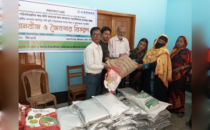বেসরকারি এনজিও লিডার্সের উদ্যোগে আজ বৃহস্পতিবার (১১ জুলাই '২৪) সাতক্ষীরার আশাশুনি সদর ইউনিয়ন পরিষদে জলবায়ু পরিবর্তন জনিত ক্ষয়-ক্ষতি কমানোর জন্য জনগণের সহনশীলতায় রূপান্তর প্রকল্প” এর উপকার ভোগী কৃষানীদের মাঝে লবন ও জলাবদ্ধতা সহনশীল ধান বীজও জৈব সার বিতরণ করা হয়।
