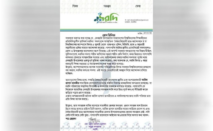 উল্লেখ্য, ক্যাম্পাসগুলোতে ব্যাপক সংঘর্ষের পরিপ্রেক্ষিতে বিগত সরকার বিশ্ববিদ্যালয়ের হলগুলো বন্ধ করলে, দরদির অসংখ্য সদস্য ওই সময়ে দেবহাটাতেই অবস্থান নিয়ে আন্দোলন চালিয়ে যাচ্ছিল। তবে দুঃখের বিষয় হলো, সম্প্রতি বৈষম্যবিরোধী আন্দোলন স্থানীয় এক অংশগ্রহণকারী আবিদ হাসান তানভীর সামাজিক যোগাযোগ মাধ্যমে দরদির বিরুদ্ধে মানহানিকর অপপ্রচার চালাচ্ছে। যা দরদি পরিবারের সম্মানিত উপদেষ্টা ও সদস্যসহ সকলকে মর্মাহত করেছে। পাশাপাশি সে নিজেকে স্বঘোষিত দেবহাটা উপজেলার সমন্বয়ক দাবি করে ইতঃপূর্বে অসংখ্য নীতিভ্রষ্ট কাজে জড়িয়ে পড়ার প্রমাণ রয়েছে। এজন্য অপপ্রচারকারী জনৈক আবিদ হাসান তানভীরের এ কার্যকলাপের জন্য দরদি পরিবার তার প্রতি নিন্দা জ্ঞাপন করছে।
