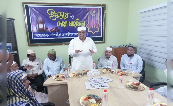 বৃহস্পতিবার (১২ মার্বিচ '২৬) বিকালে সাতক্ষীরা জেলা মৎস্য অফিসের কনফরেন্স রুমে সাতক্ষীরা সাংবাদিক কল্যাণ সংস্থা'র সভাপতি মোঃ আবু সাঈদ এর সভাপতিত্বে ইফতার মাহফিলে প্রধান অতিথি হিসেবে বক্তব্য রাখেন সাতক্ষীরা জেলা বিএনপির আহবায়ক এইচ এম রহমাহতুল্লাহ পলাশ।
