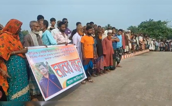 শনিবার (৪ এপ্রিল '২৬) সকালে কাপসন্ডা বাজারের ব্রীজের উপর খাজরা ইউনিয়নের সর্বস্তরের জনগণের ব্যানারে উক্ত মানববন্ধন অনুষ্ঠিত হয়। শত শত নারী পুরুষ ও ভুক্তভোগি সাধারণ জনগণ এতে অংশ গ্রহন করেন। মানববন্ধন চলাকাল বক্তব্যে রাখেন, খাজরা ইউনিয়ন জামায়াতের সেক্রেটারী মাওঃ আব্দুর রশিদ, ইউপি রামপদ সানা, ৬নং ওয়ার্ড বিএনপির সেক্রেটারী লুৎফর রহমান, ছাদেক হোসেন, সাবেক ইউপি সদস্য ইসমাইল হোসেন, নুরুজ্জামান, স্থানীয় পূজা উদযাপন পরিষদের সেক্রেটারী প্রীতিশ রায়, স্থানীয় বাসীন্দা শেখ সোহরাব হোসেন, জাহাঙ্গীর হোসেন, ফরিদা রহমান প্রমুখ।
