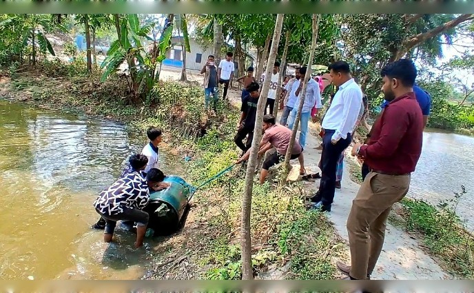 অতিরিক্ত মূল্যে জ্বালানি তেল বিক্রির অভিযোগে গোপালগঞ্জ জেলা প্রশাসন কর্তৃক পরিচালিত ভ্রাম্যমাণ আদালতের অভিযানে পুকুরের পানির নিচ থেকে লুকিয়ে রাখা ১ ব্যারেল ডিজেল উদ্ধার করা হয়েছে।