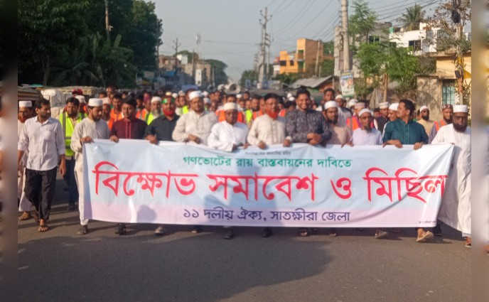 নির্বাচনের পর গণভোটের গণরায় বাস্তবায়নের দাবিতে সাতক্ষীরাতে বিএনপি সরকারের বিরুদ্ধে বড় ধরনের বিক্ষোভ করেছে সাতক্ষীরা জেলা জামায়াতসহ ১১ দলীয় ঐক্য।