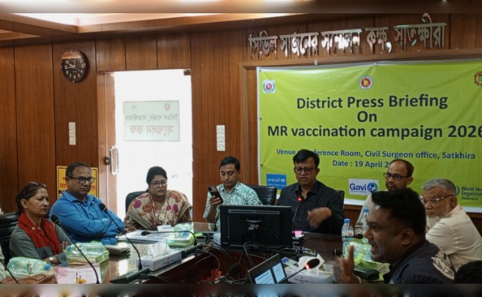 সারাদেশের টিকাদান কর্মসূচির অংশ হিসেবে সাতক্ষীরায় শুরু হতে যাচ্ছে হাম-রুবেলা (এমআর) টিকাদান ক্যাম্পেইন-২০২৬। আগামী ২০ এপ্রিল থেকে ১০ মে পর্যন্ত চলবে এ কর্মসূচি। এ উপলক্ষে রবিবার (১৯ এপ্রিল '২৬) দুপুরে জেলা সিভিল সার্জন কার্যালয়ের সম্মেলন কক্ষে এক প্রেস ব্রিফিং অনুষ্ঠিত হয়। এতে সভাপতিত্ব করেন জেলা সিভিল সার্জন ডা. মো. আব্দুস সালাম।