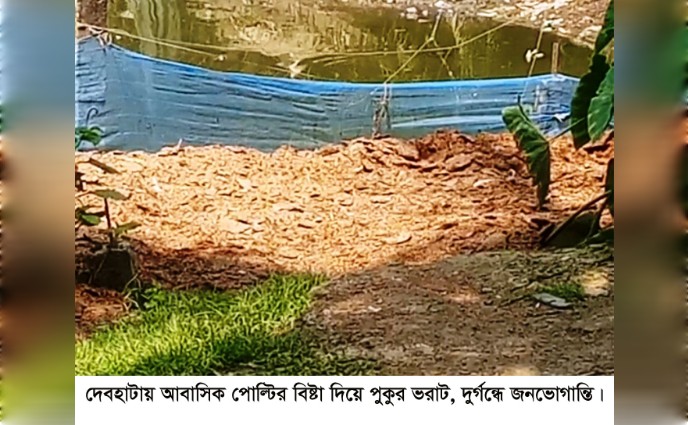 দেবহাটায় আবাসিক পোল্টির বি ষ্টা দিয়ে পুকুর ভরাট, দু র্গ ন্ধে জ ন ভো গা ন্তি!