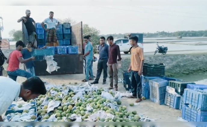 সাতক্ষীরার কালিগঞ্জে রাসায়নিক দিয়ে পাকিয়ে ঢাকায় পাঠানোর প্রাক্কালে ১৬৮ ক্যারেট ভর্তি ৩ হাজার ৩৬০ কেজি গোবিন্দভোগ আম জব্দ করে তা বিনষ্ট করেছে ভ্রাম্যমাণ আদালত।