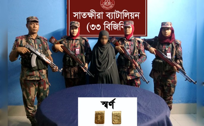বিজিবি জানায়, ইজিবাইক যোগে স্বর্ণের একটি চালান ভারতে পাচারের উদ্দেশ্যে ভোমরা সীমান্তের দিকে নিয়ে যাওয়া হচ্ছে এমন গোপন সংবাদের ভিত্তিতে সাতক্ষীরা বিজিবি ব্যাটালিয়ন সদরের একটি চৌকষ আভিযানিক দল বাঁকাল চেকপোষ্ট সংলগ্ন এলাকায় অভিযান চালায়। এসময় সেখান থেকে দুই পিস স্বর্ণের বারসহ ওই নারী চোরাকারবারীকে হাতনাতে আটক করা হয়। জব্দকৃত স্বর্ণের বারের ওজন ২৯৬.৪০ গ্রাম। যার বাজার মুল্য ৬২ লাখ ৯৩ হাজার ৮১০ টাকা।