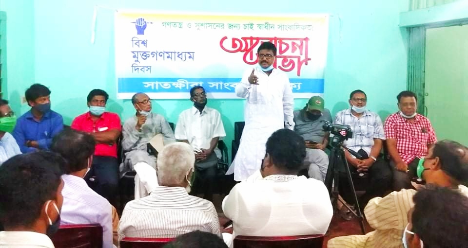 বিশ্বমুক্ত গনমাধ্যম দিবস উপলক্ষ্যে সামাজিক দুরত্ব বজায় রেখে স্বাস্থ্য বিধি মেনে সাতক্ষীরার ‘সাংবাদিক ঐক্য’ আয়োজিত এক সাংবাদিক সমাবেশে সোমবার এসব কথা বলেন তারা। এসময় তারা আরও বলেন, দেশে এখন বহু সংখ্যক সংবাদপত্র এবং টেলিভিশন তাদের মত প্রকাশ করতে পারলেও বাঁধা হয়ে দাঁড়িয়েছে ডিজিটাল নিরাপত্তা আইন। এই আইনের ফাঁদে পড়ে বহু সংবাদকর্মী নিগৃহীত হয়েছেন। এ ধরনের আইন পরিহার করে মুক্ত সাংবাদিকতা নিশ্চিত করতে পারলে গনতন্ত্র আরও শানিত হবে বলে উল্লেখ করেন তারা।