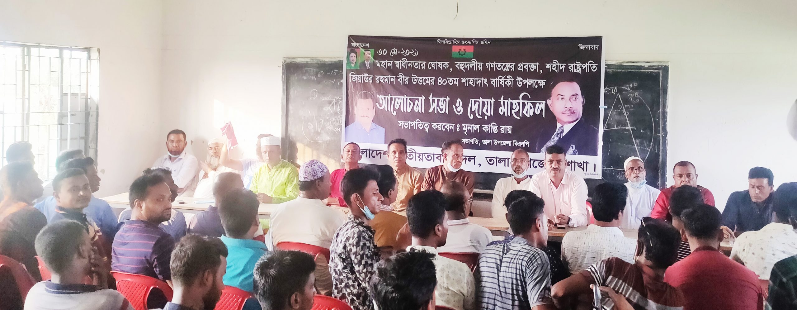 সাতক্ষীরা তালায় বিএনপির প্রতিষ্ঠাতা শহীদ প্রেসিডেন্ট জিয়াউর রহমানের ৪০ তম শাহাদাৎ বার্ষিকী উপলক্ষে আলোচনা সভা ও দোয়া মাহফিল অনুষ্ঠিত হয়েছে।