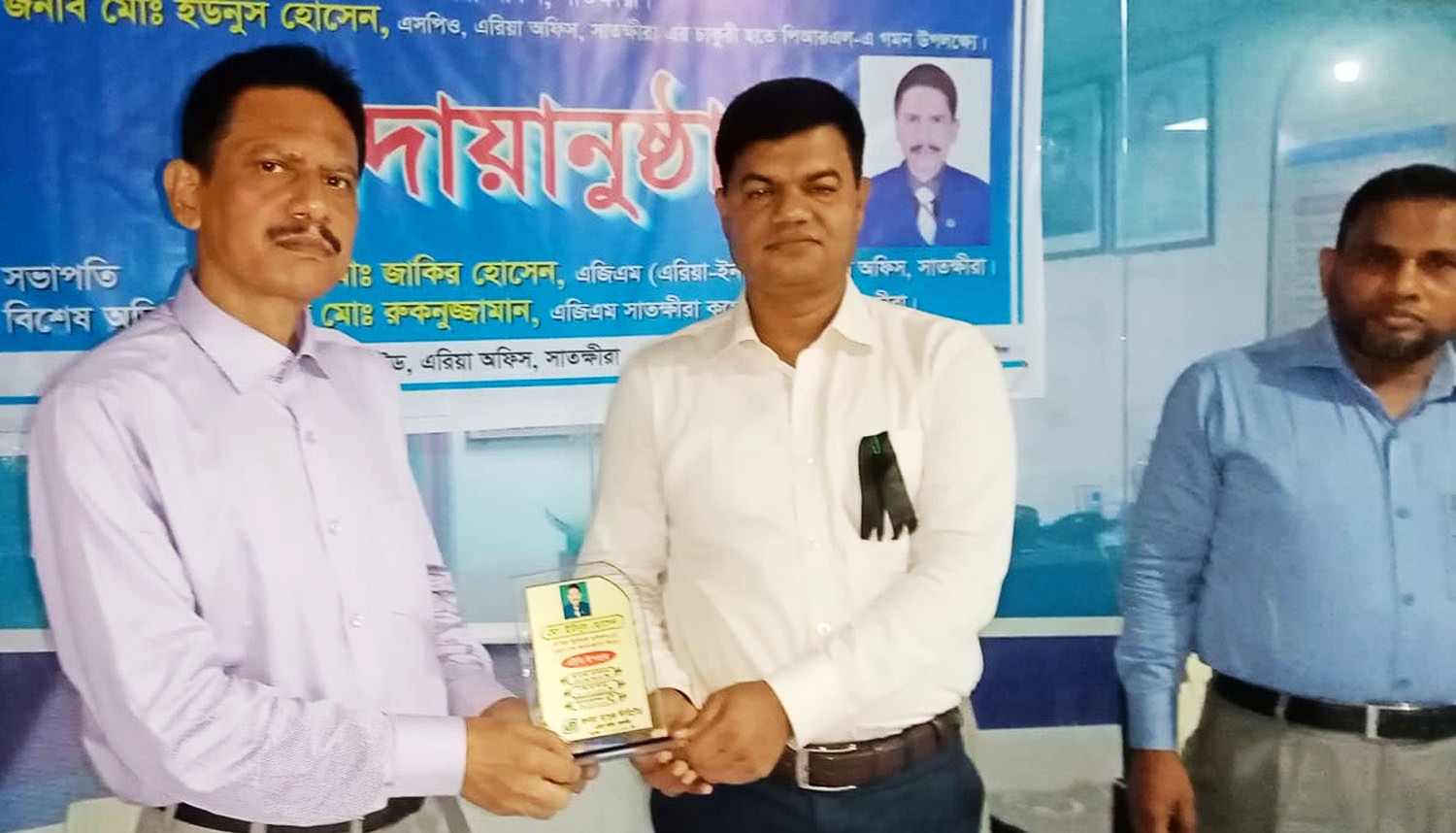 অনুষ্ঠানে বিদায়ী অতিথিকে জনতা ব্যাংক লিমিটেড সাতক্ষীরা এরিয়া অফিসের পক্ষ থেকে ক্রেস্ট ও উপহার সামগ্রী প্রদান করে সংবর্ধনা দেওয়া হয়।