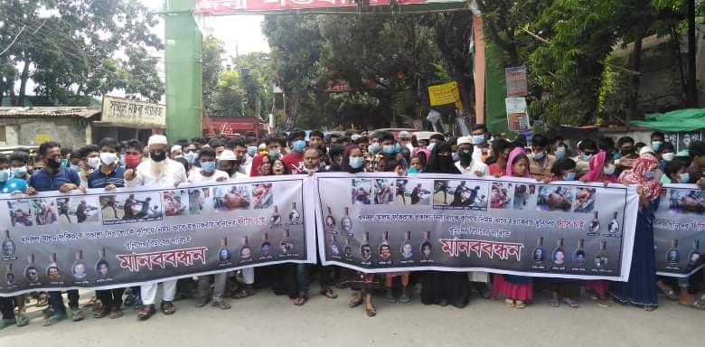 মানববন্ধন শেষে তারা একটি মিছিল নিয়ে গোপালগঞ্জ জেলা প্রশাসকের কার্যালয়ের সামনে বিক্ষোভ প্রদর্শন করে তীব্র প্রতিবাদ জানায়।