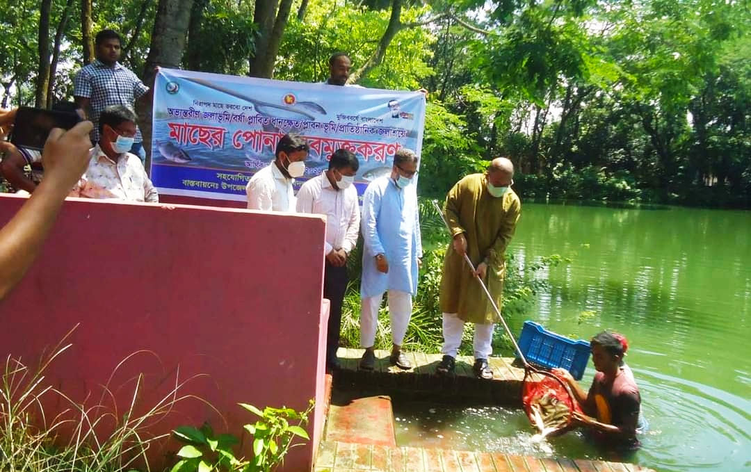 ‘নিরাপদ মাছে ভরবো দেশ মুজিববর্ষে বাংলাদেশ’ এই প্রতিপাদ্যকে সামনে রেখে অভ্যন্তরীণ জলাভূমি/বর্ষা প্লাবিত ধান ক্ষেত/প্লাবন ভূমি/প্রাতিষ্ঠানিক জলাশয়ে মাছের পোনা অবমুক্ত করণের উদ্বোধন করা হয়েছে।