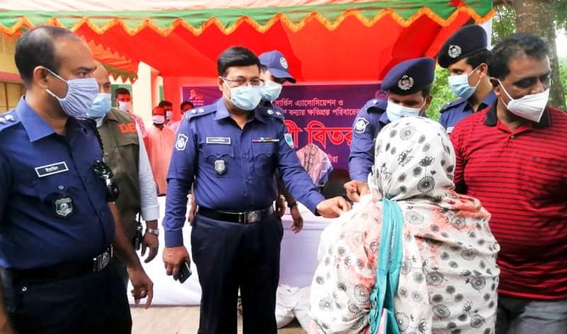 আশাশুনিতে বানভাসী মানুষের মাঝে খাদ্য সহায়তা দিলেন সাতক্ষীরার এসপি