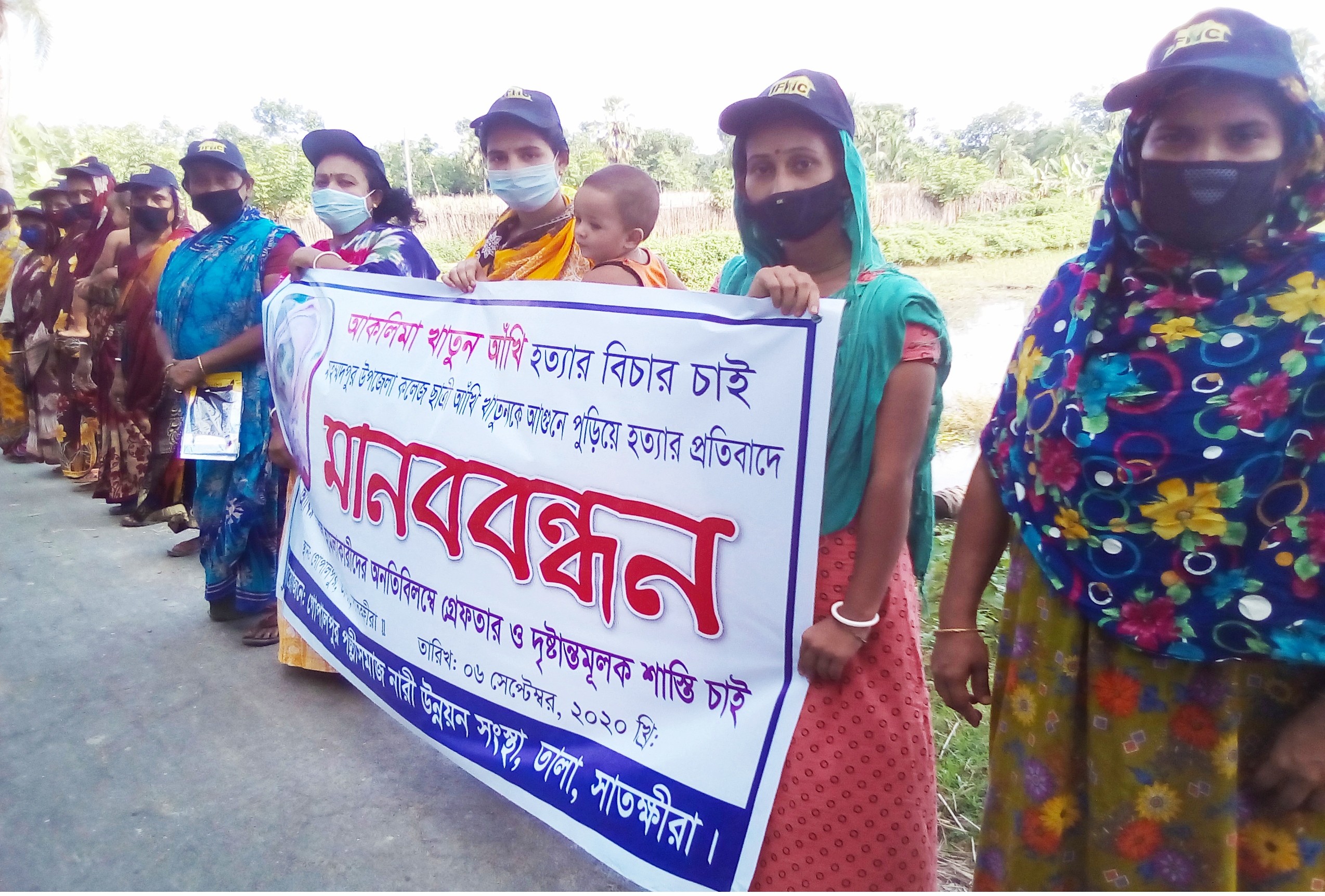 তালায় কলেজ ছাত্রী আঁখি হত্যার প্রতিবাদে মানববন্ধন