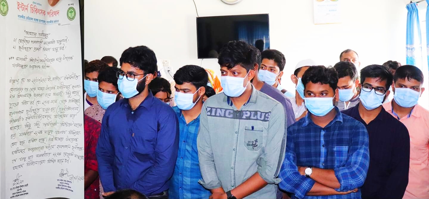 পূর্ণাঙ্গ জরুরি বিভাগ চালু ও কোভিডের পাশাপাশি ননকোভিট পেশেণ্ট ভর্তির দাবিতে সাতক্ষীরা মেডিকেল কলেজ হাসপাতালে ইন্টার্ণ চিকিৎসদের কর্মবিরতি পালন করেছে।