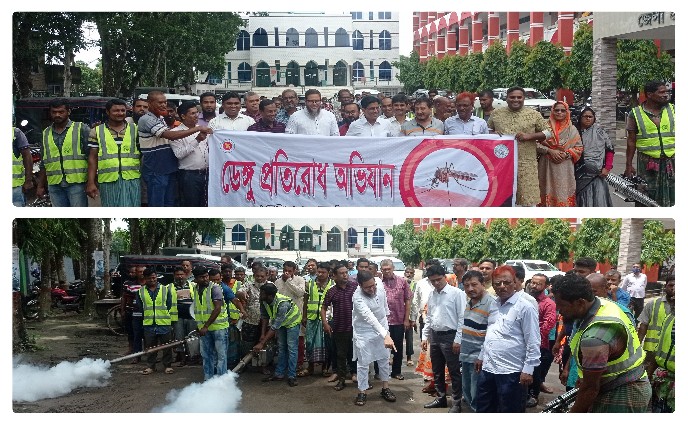 সাতক্ষীরা পৌরসভায় ডেঙ্গু প্রতিরোধ অভিযান শুরু করা হয়েছে। ৭ সেপ্টেম্বর বৃহস্পতিবার বেলা ১১ টায় সাতক্ষীরা জেলা প্রশাসকের কার্যালয়ের সামনে সাতক্ষীরা পৌরসভা ও জেলা প্রশাসনের যৌথ আয়োজনে এ অভিযান পরিচালনা করা হয়েছে।
