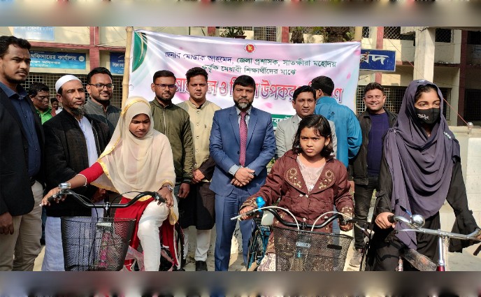 সাতক্ষীরার দেবহাটায় শিক্ষার্থীদের মাঝে বাইসাইকেল, শিক্ষা উপকরণ ও অসহায় নারীদের স্বাবলম্বী করতে সেলাই মেশিন বিতরণ উদ্বোধন করেছেন জেলা প্রশাসক মোস্তাক আহমেদ।