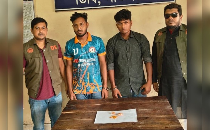 আটককৃতরা হলেন, যশোর জেলার শার্শা আমতলা গ্রামের নজরুল ইসলাম সরদারের ছেলে সহিদুল ইসলাম হৃদয় (২৪) ও একুই এলাকার নুর আলীর ছেলে মোঃ নুর মোহম্মদ (২৩)।
