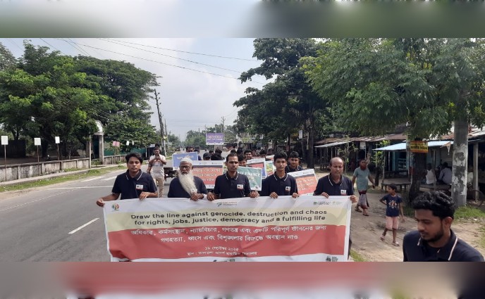 অধিকার, কর্মসংস্থান, ন্যায়বিচার, গণতন্ত্র এবং একটি পরিপূর্ণ জীবনের জন্য গণহত্যা, ধ্বংস এবং বিশৃঙ্খলার বিরুদ্ধে অবস্থান নাও এই প্রতিপাদ্যকে সামনে রেখে সাতক্ষীরায় নবায়নযোগ্য জ্বালানি অধিকার আদায়ের লক্ষ্যে সাইকেল র্যালি অনুষ্ঠিত হয়েছে। শুক্রবার (১৯ সেপ্টেম্বর '২৫) সকালে ধরিত্রী রক্ষায় আমরা(ধরা) এর সহযোগিতায় সুন্দরবন ফাউন্ডেশন ও আনন্দ সংস্থার আয়োজনে সাইকেল র্যালি করা হয়েছে।