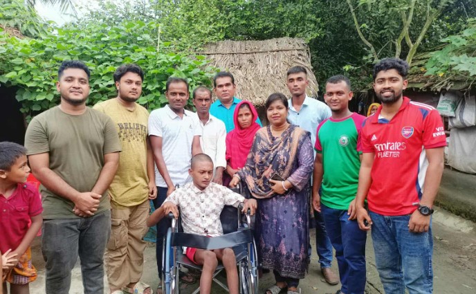 সাতক্ষীরা জেলার তালা উপজেলার ১২নং খলিলনগর ইউনিয়নের বিশেষ চাহিদাসম্পন্ন শিশু মুজাহিদকে হুইলচেয়ার উপহার দিয়েছে স্বেচ্ছাসেবী সংগঠন ‘আমরা বন্ধু ইয়ুথ ফাউন্ডেশন’।