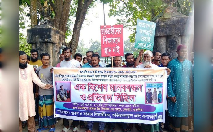 দেবহাটায় শিক্ষক ও আয়ার অনৈতিক কর্মকান্ডের সুষ্ঠ তদন্ত ও দৃষ্টান্তমূলক শাস্তি দাবিতে মানববন্ধন