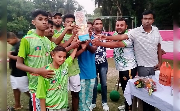 খেলা শেষে বিজয়ীদের মাঝে পুরস্কার বিতরণ করেন অতিথিবৃন্দ।