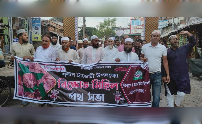 সাতক্ষীরার তালায় উপজেলা জামায়াতে ইসলামীর উদ্যোগে পল্টন ট্রাজেডি উদ্যোগে বিক্ষোভ মিছিল ও পথসভা অনুষ্ঠিত হয়েছে।