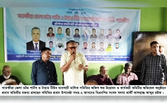 সাতক্ষীরা জেলা মটর পার্টস ও টায়ার টিউব ব্যবসায়ী মালিক সমিতির অফিস শুভ উদ্বোধন ও প্রতিষ্ঠাতা কার্যকরী কমিটির অভিষেক অনুষ্ঠান অনুষ্ঠিত হয়েছে।