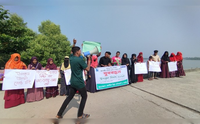‘উপকূলের জন্য হোক একটি দিন, জোরালো হোক উপকূল সুরক্ষার দাবি’ এই স্লোগানকে সামনে রেখে সাতক্ষীরার শ্যামনগর ১২ নভেম্বরকে ‘উপকূল দিবস’ ঘোষণার দাবিতে মানববন্ধন অনুষ্ঠিত হয়েছে। কোস্টাল ইয়ূথ নেটওয়ার্ক ও গবেষণা প্রতিষ্ঠান বারসিকের উদ্যোগে মঙ্গলবার (১২ নভেম্বর '২৫) সকালে উপজেলার কাশিমাড়ীত খোলপেটুয়া নদীর তীরে এ মানববন্ধন কর্মসুচি পালিত হয়।
