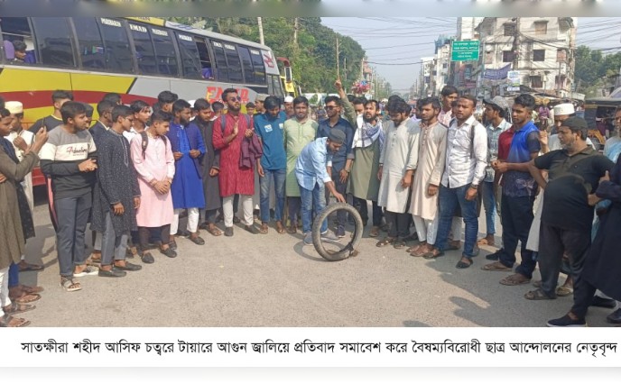 সাতক্ষীরার জুলাই স্মৃ”তিস্তম্ভে অ”গ্নিসং”যোগের অ”ভিযোগে জুলাইযোদ্ধাদের প্র”তিবাদ সমাবেশ, অ”গ্নিকা”ন্ডের ঘ”টনা ঘ”টেনি, দা”বি পুলিশের