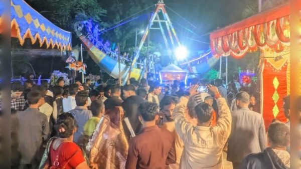 কার্তিক পূজা উপলক্ষে গত ১৮ নভেম্বর থেকে এই মেলার আয়োজন করেন স্থানীয়রা। মেলার শেষ দিন ২১ নভেম্বর। এদিকে বিদ্যালয় মাঠে মেলার আয়োজনের জন্য জেলা প্রশাসক বা উপজেলা নির্বাহী অফিসারের নিকট থেকে নেওয়া হয়নি অনুমোদন।