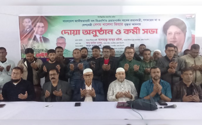 বাংলাদেশ জাতীয়তাবাদী দল বিএনপির চেয়ারপারর্সন সাবেক প্রধানমন্ত্রী,গণতন্ত্রের মা ও দেশনেত্রী বেগম খালেদা জিয়ার সুস্থতা কামনায় দোয়া অনুষ্ঠান ও কর্মীসভা অনুষ্ঠিত হয়েছে।
