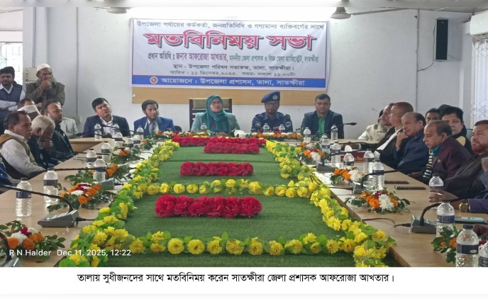 বৃহস্পতিবার (১১ ডিসেম্বর '২৫) বেলা সাড়ে ১১টায় উপজেলা প্রশাসনের আয়োজনে তালা উপজেলা পরিষদের সভাকক্ষে অনুষ্ঠিত মতবিনিময় সভায় সভাপতিত্ব করেন তালা উপজেলার নির্বাহী কর্মকর্তা তারেক হাসান।