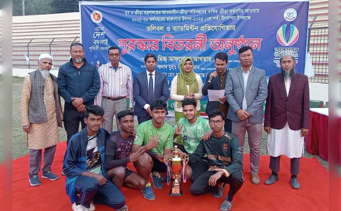 "এসো দেশ বদলাই পৃথিবী বদলাই" এই প্রতিপাদ্যকে সামনে রেখে সাতক্ষীরায় যুব ও ক্রীড়া মন্ত্রণালয়ের আওতাধীন ক্রিয়া পরিদপ্তরের বার্ষিক ক্রীড়া কর্মসূচির আওতায় ২০২৫-২০২৬ অর্থ বছরের তারুণ্যের উৎসব ২০২৫ (২য় পর্ব) উদযাপন উপলক্ষে ভলিবল ও ব্যাডমিন্টন প্রতিযোগিতার পুরস্কার বিতরণী অনুষ্ঠান অনুষ্ঠিত হয়েছে।