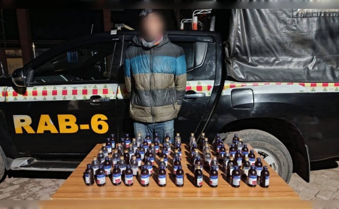 র্যাব জানায়, উদ্ধারকৃত মাদকগুলোর লেবেলে ‘Rx Codeine Phosphate & Triprolidine Hydrochloride’ উপাদানের উল্লেখ রয়েছে, যা মাদকদ্রব্য নিয়ন্ত্রণ আইনে নিষিদ্ধ।