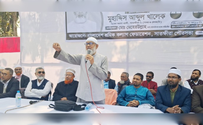 শ্রমিকদের অধিকার ও কল্যাণের উপর জোর দিয়ে সাতক্ষীরা সদর ২ আসনের দাঁড়িপাল্লার প্রার্থী মুহাদ্দিস আব্দুল খালেক বলেছেন, “শ্রমিকরা আমার বন্ধু। ইসলামী শ্রম নীতি যদি কায়েম করা যায়, শ্রমিকও ভালো থাকবে, মালিকও ভালো থাকবে। তিনি বলেন আমরা বার বার প্রতারিত হয়েছি, আর প্রতারিত হতে চাইনা। মানবিক নেতা ডা. শফিকুর রহমানের নেতৃত্বে আমরা এগিয়ে যাবো। আগামী দিনে ডা. শফিকুর রহমানের নেতৃত্বে এদেশ চলবে।”