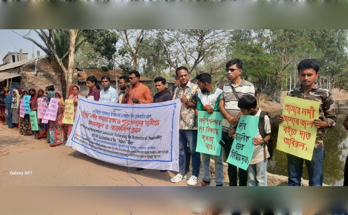 এমনই পরিস্থিতিতে নদীর নাব্যতা রক্ষা ও পুনঃখননের দাবিতে বুধবার (২৫ ফেব্রুয়ারি '২৬) রাজা প্রতাপাদিত্যর রাজধানী খ্যাত শ্যামনগরের ধুমঘাট হাটখোলায় মানববন্ধন কর্মসূচি পালন করেছেন স্থানীয়রা।