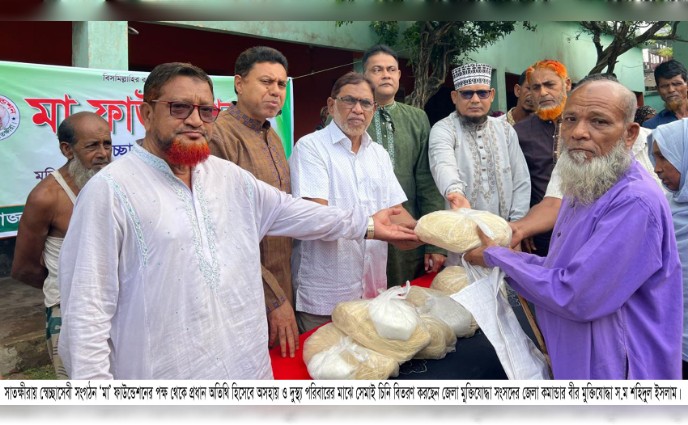 শনিবার (১৪ মার্চ '২৬) ২৪ রমজান সকালে ডি.বি ইউনাইটেড হাইস্কুল চত্বরে স্বেচ্ছাসেবী সংগঠন ‘মা’ ফাউন্ডেশনের আয়োজনে সংগঠনের চেয়ারম্যান ও ডি.বি ইউনাইটেড হাইস্কুলের প্রধান শিক্ষক মো. মমিনুর রহমান মুকুল এঁর সভাপতিত্বে প্রধান অতিথি হিসেবে অসহায় ও দুস্থ্য পরিবারের মাঝে সেমাই চিনি বিতরণ করেন সাতক্ষীরা জেলা মুক্তিযোদ্ধা সংসদের জেলা কমান্ডার ও সাবেক ইউপি চেয়ারম্যান বীর মুক্তিযোদ্ধা স.ম শহিদুল ইসলাম। প্রধান অতিথির বক্তব্যে তিনি বলেন, “মা” ফাউন্ডেশন প্রতিষ্ঠার পর থেকে আত্মমানবতার সেবায় জনকল্যাণে কাজ করে যাচ্ছে। প্রতিবছর ঈদে সেমাই চিনি বিতরণ, গরীব মেধাবি শিক্ষার্থীদের মাঝে শিক্ষা উপকরণ বিতরণ, অসহায় নারীদেরদের স্বাবলম্বী করতে সেলাই মেশিন বিতরণ, শীতার্ত অসহায় মানুষের মাঝে শীতবস্ত্র কম্বল বিতরণ করে থাকে। ‘মা’ ফাউন্ডেশনের এই মহতী উদ্যোগ প্রশসংনীয়। এজন্য ‘মা’ ফাউন্ডেশনের চেয়ারম্যানসহ সংগঠনের সকলকে ধন্যবাদ জানাচ্ছি। সমাজের বিত্তবানরাও যদি ‘মা’ ফাউন্ডেশনের মতো সমাজের অসহায় মানুষের পাশে দাঁড়ায় তাহলে সমাজের পিছিয়ে পড়া অসহায় মানুষেরা অনেক উপকৃত হবে বলে মনে করি।”