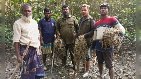 পশ্চিম সুন্দরবনের সাতক্ষীরা রেঞ্জের অভয়ারণ্য এলাকার মান্দারবাড়িয়া ও হলদেবুনিয়স খাল থেকে রবিবার (২১ ডিসেম্বর ‘২৫) ভোরে একটি ট্রলার ও একটি নৌকাসহ নয়জন জেলেকে আটক করেছে বনবিভাগ। এসময় মাছ কাঁকড়া ধরার