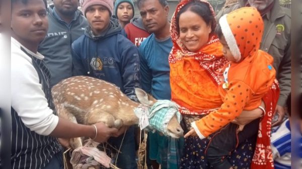 সুন্দরবনের খোলপেটুয়া নদী থেকে একটি জীবিত মায়া হরিণ উদ্ধার করেছে বন বিভাগ। বৃহষ্পতিবার (২৫ ডিসেম্বর ‘২৫) সকালে হরিণটিকে উদ্ধার করে পশ্চিম সুন্দরবনের সাতক্ষীরা রেঞ্জের কলাগাছিয়া ইকো-ট্যুরিজম পার্কে অবমুক্ত করা হয়।