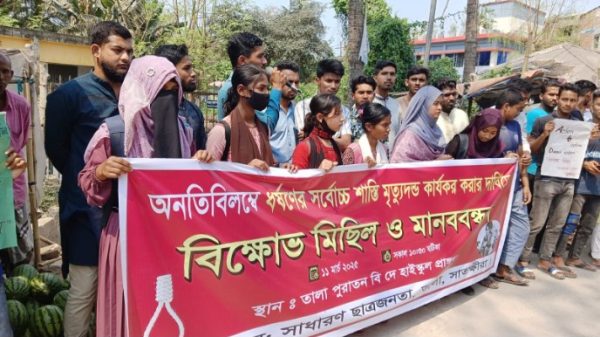 ধর্ষকের সর্বোচ্চ শাস্তি মৃত্যুদন্ড কার্যকরের দাবিতে পাটকেলঘাটায় মানববন্ধন অনুষ্ঠিত