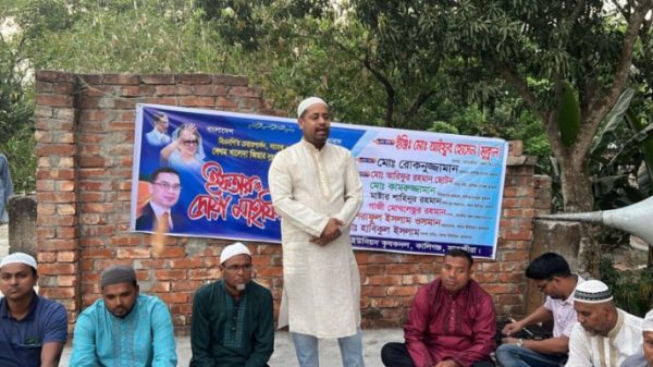 সাতক্ষীরা জেলার কালিগঞ্জ উপজেলার নলতা ইউনিয়নের ৭ নং ওয়ার্ড কৃষকদল কতৃক আয়োজিত ইফতার ও দোয়া মাহফিল অনুষ্ঠিত। বুধবার (২৬ মার্চ ‘২৫) বিকেলে নলতা ইউনিয়ন কৃষক দলের আহ্বায়ক ওসমান আলীর সভাপতিত্বে